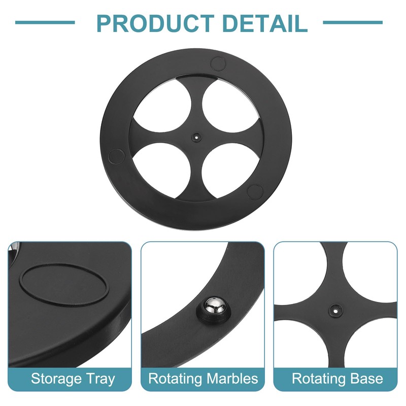 - Material: made of plastic, the turntable storage rack has high strength, is robust and durable and the surface is equipped with steel ball bearings, which make the rotation of the turntable smoother, improve the load capacity and can be used for a long time