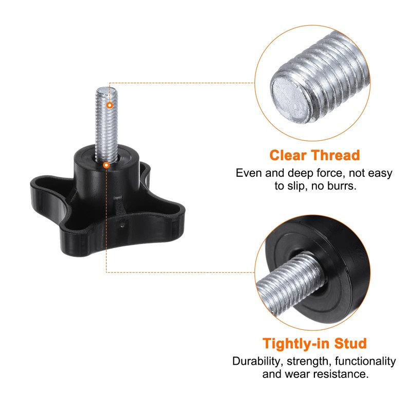 - Note - Make sure replacement knobs are safely and properly installed on the corresponding female threaded component or fastener. Do not tighten too tight, as this may cause damage to the male threaded button. Choose the star button size that meets your needs. Replace the button if necessary.