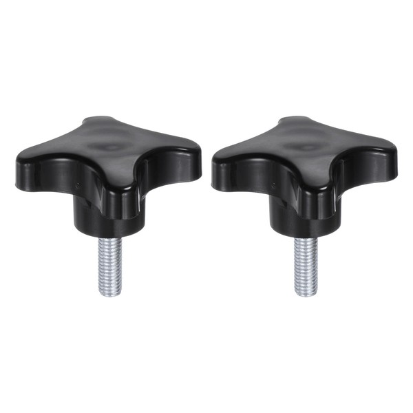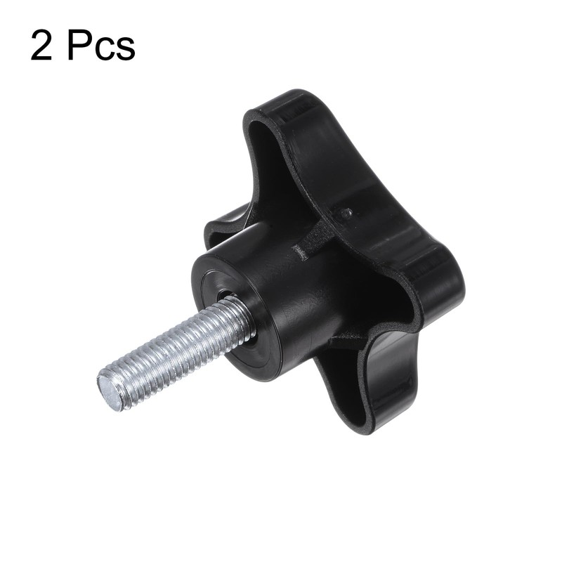 QUARKZMAN Pack of 2 Star Handles M8 x 25 mm Thread Plastic 4-Star Knob Hand Tightening Clamping Screw Replacement Thread Handle, Black