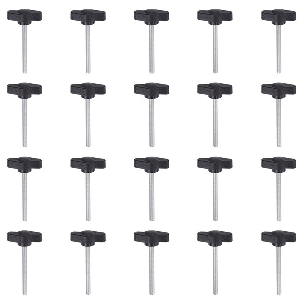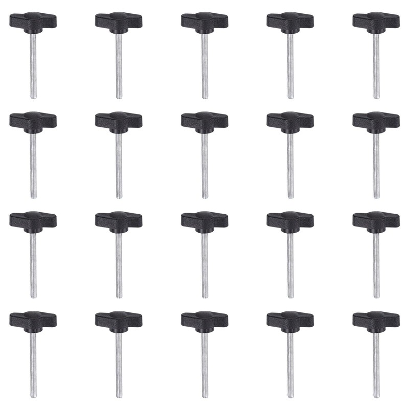 QUARKZMAN Pack of 20 Thumb Screws with T Wing Knobs, M4 x 45 mm, Plastic T-Head Threaded Bolts, Clamping Screw, Wing Screw, Grab Handles, 27 mm Clamping Button, Thumb Screws for Machine, Black