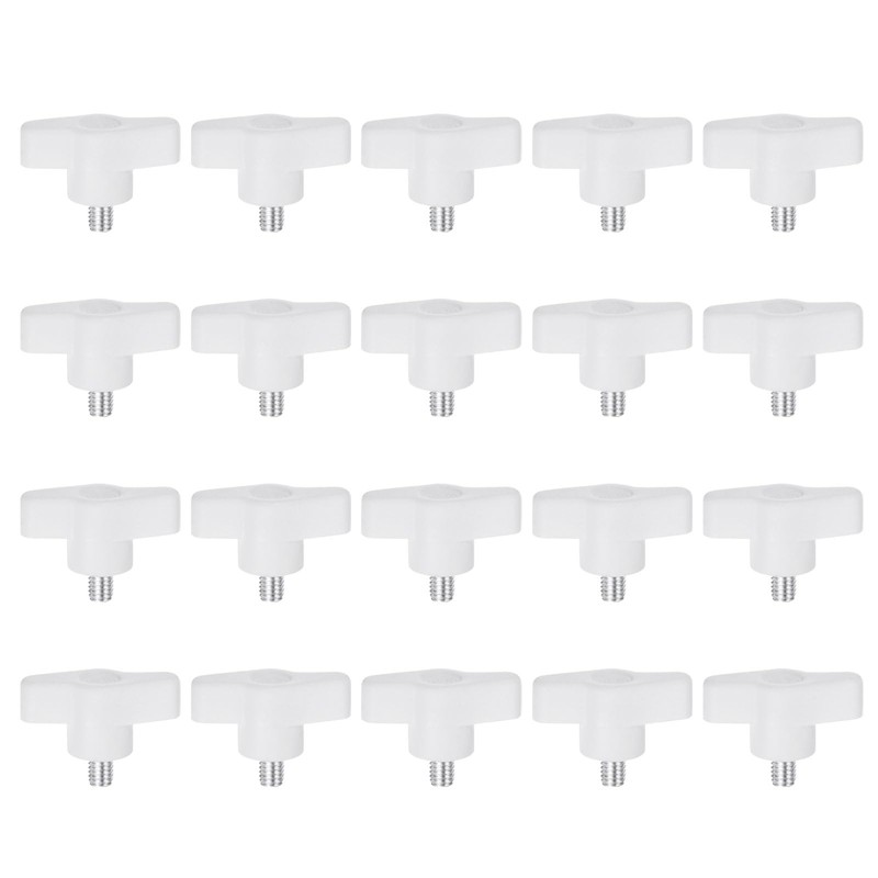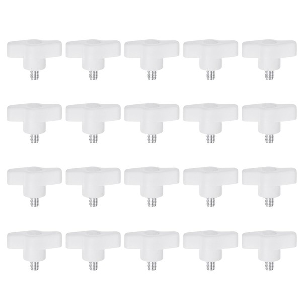 QUARKZMAN Pack of 20 Wing Knobs M6 x 10 mm Thread Plastic T-Pin Knobs T-Thread Handles Hand Clamping Thumb Screws White