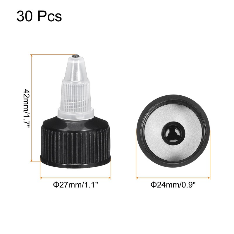 QUARKZMAN Pack of 30 Twist Top Cap 24/410 Black Dosing Bottle Replacement Caps for Crafts, Art, Glue, Liquids