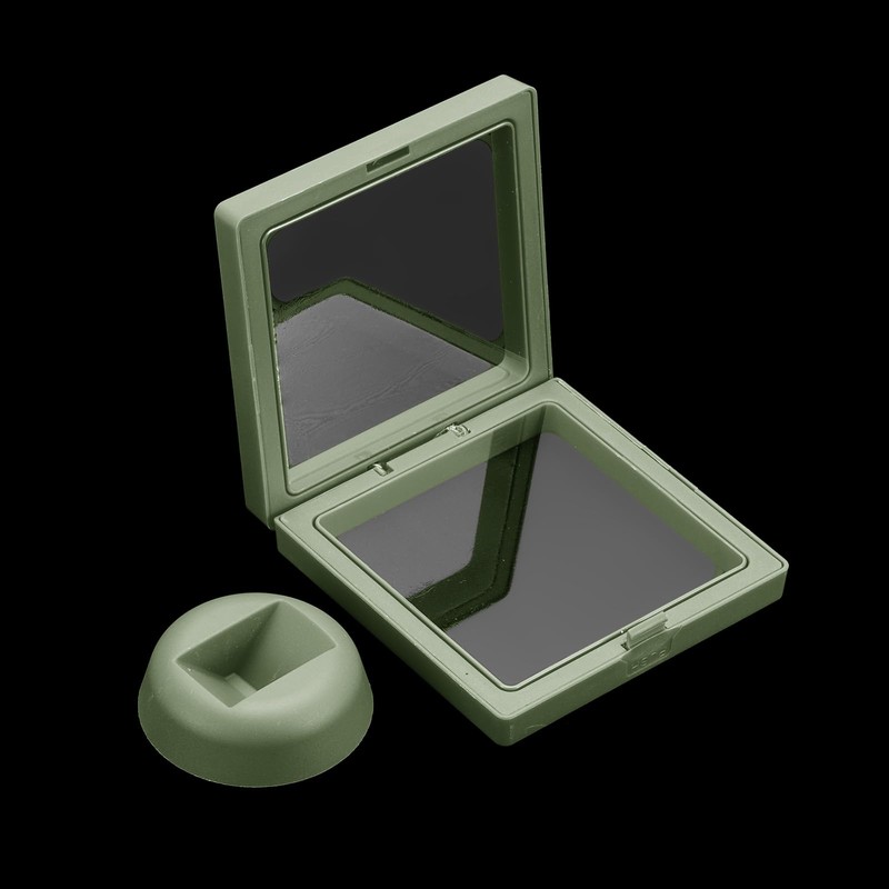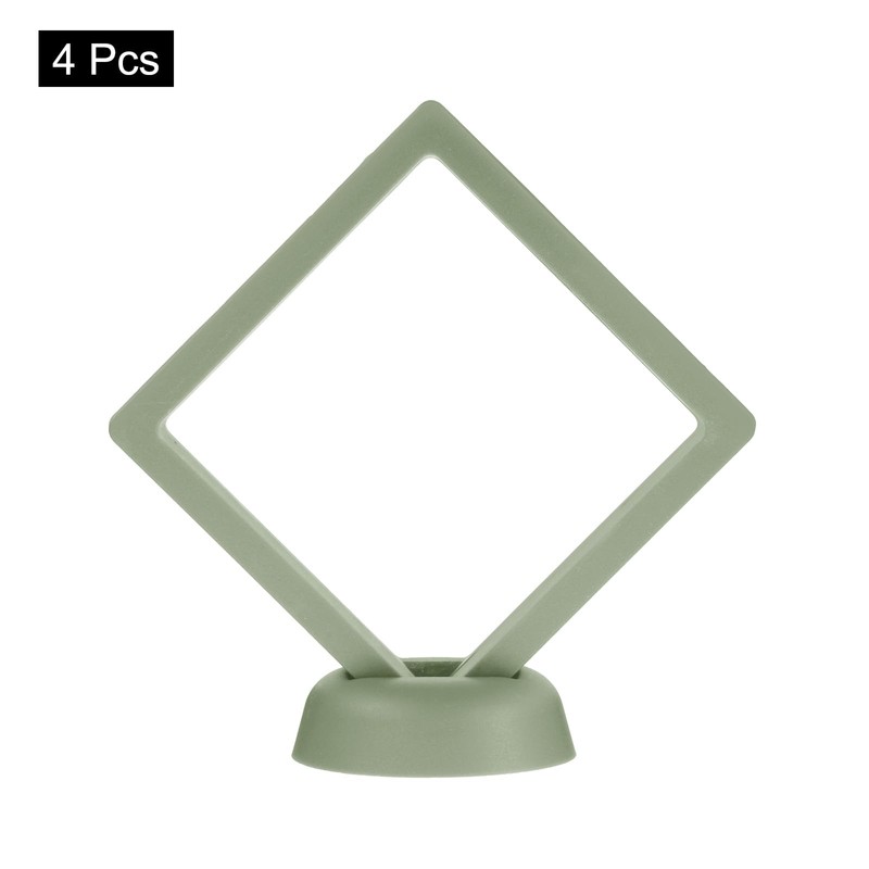 QUARKZMAN Pack of 4 3D Floating Display Housing 3.54 x 3.54 x 0.8 Floating Frame Display Holder Stand Transparent PE Jewellery Storage Box Green