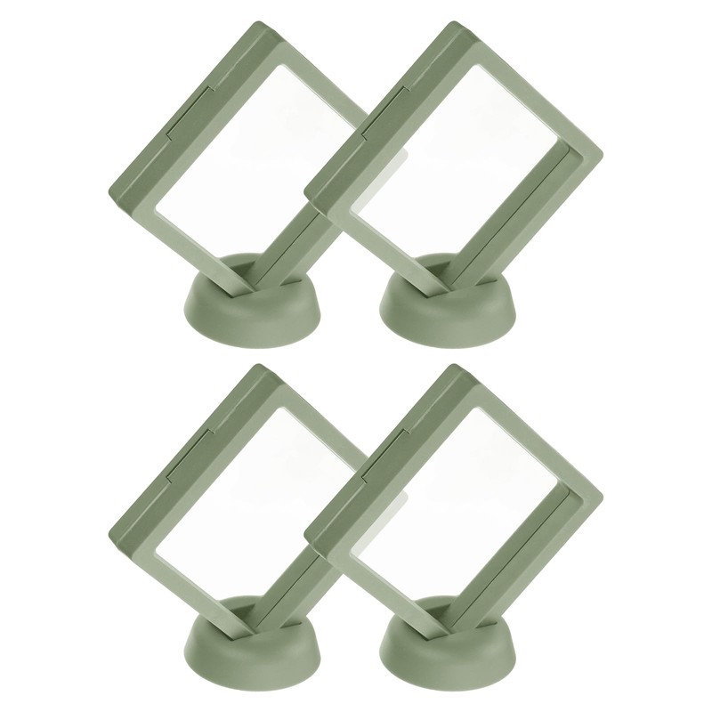 - Package contents: you will receive 4 floating display cases and stands. Frame size: 3.54"L x 3.54"W x 0.8"H; Screen size: 2.9"L x 2.9"W. Colour: Green