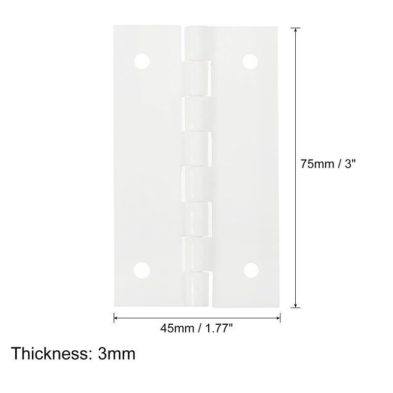 - Acrylic hinges: the package contains 4 pieces of white folding hinges in 75 x 45 mm / 3 inches x 1.77 inches length and width, 3 mm thickness, which can meet your craft needs.