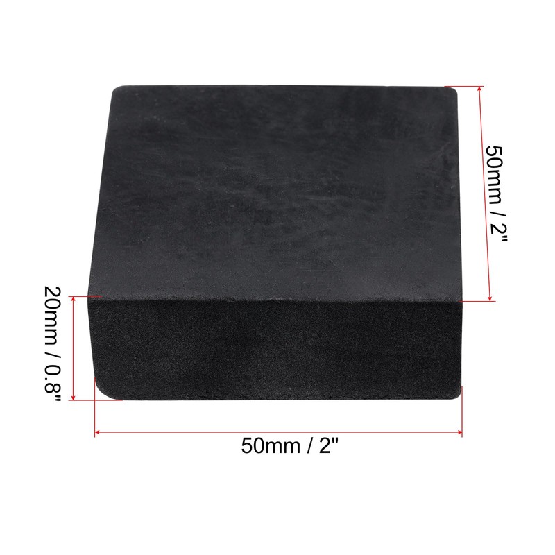 • Pack of 4 square rubber mats, solid vibration damping pads, 50 mm x 50 mm x 20 mm / 2 inches x 2 inches x 0.8 inches (L x W x D).