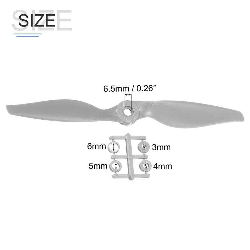 - Propeller Diameter: 7 inch; Pitch: 5 inch; Hole Diameter: 6.5 mm/0.26 inch; Propeller Washer Size: 6 mm/5 mm/4 mm/3 mm; Root Thickness: 8.8 mm/0.35 inch; Number of Blades: 2