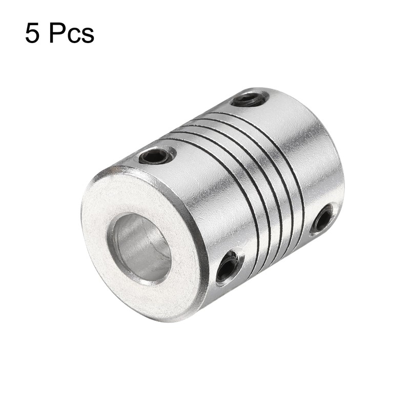 QUARKZMAN Pack of 5 Aluminium Alloy Shaft Coupling 8 mm to 8 mm, Flexible Coupling Motor Connector Joint, Stepper Motor Coupling for CNC Machine & 3D Printer (L25xD19)