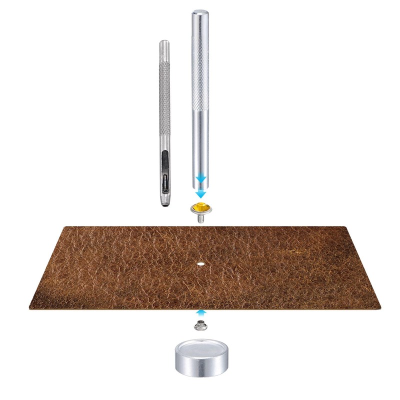 Easy to use: you can make a hole by yourself and install the rivets. It is very simple. Practical base tool: there are grooves on the base that fix the rivets and prevent bending and slipping.