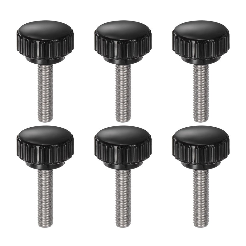 - Standard thread size: M6 (1 mm pitch); thread length: 25 mm/0.98 inches; knurled head diameter: 22 mm/0.87 inches; total height: 39 mm/1.54 inches. The screws are neat and clear, the force is uniform and it is not easy to slip.