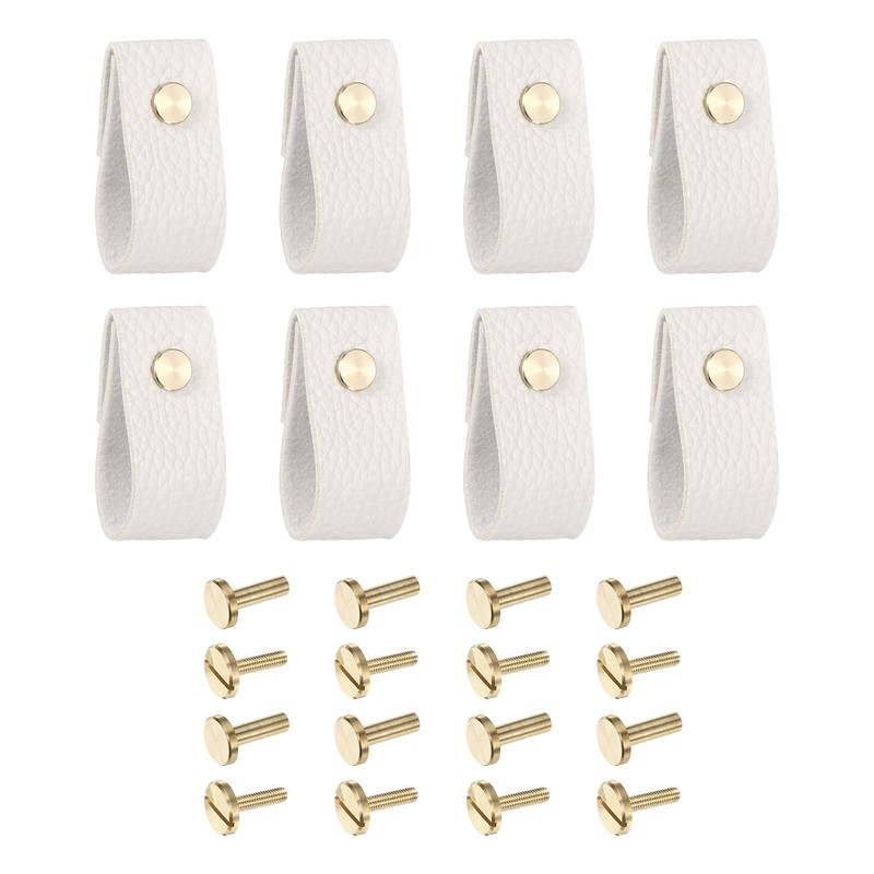 QUARKZMAN Pack of 8 Leather Drawer Knobs, Leather Handles, Replacement for Traditional Knobs for Drawers, Cupboards, Kitchen Cabinets, White