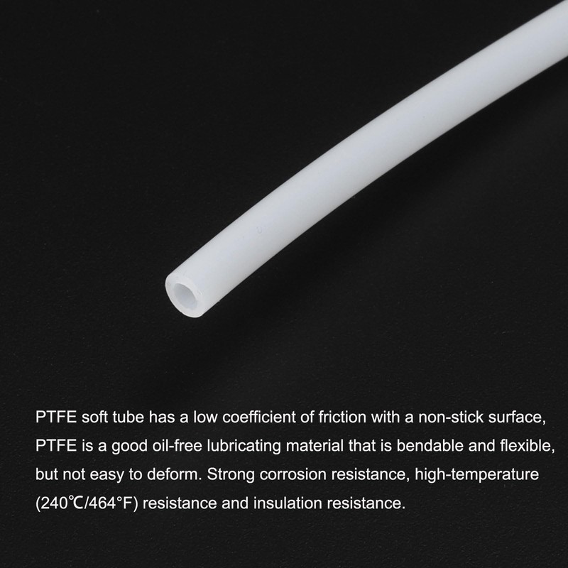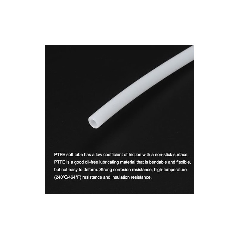 The flexible PTFE hose is often used for electrical insulation at different frequencies, e.g. For liquid or gas delivery hoses, liner hoses, heat exchanger pipes, guide rails and conveyor hoses for 3D printers, use in machines, electronics, valves etc.