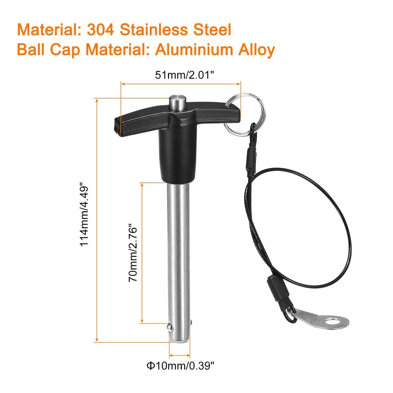 - [Specification]: Package contents: 1 x T handle locking pin; diameter: 10 mm (25/64 inch); use length: 70 mm (2-3/4 inch); handle length: 35 mm (1.38 inches)
