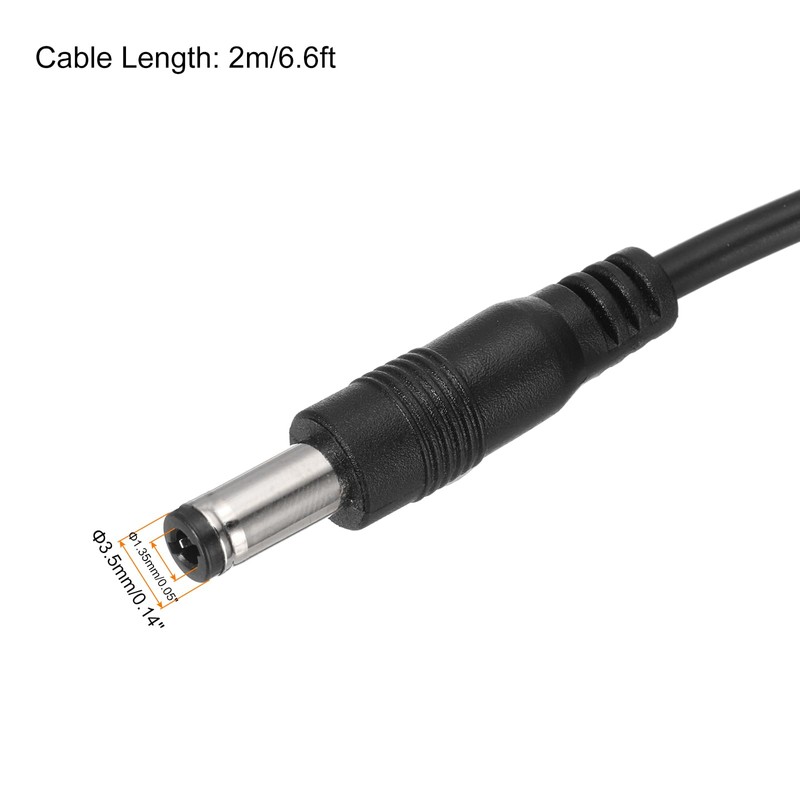 - Produktname: 5V USB-Stecker auf DC-Kabel; Material: PVC, sauerstofffreies Kupfer; Kabellänge: 2m/6,6ft; DC-Stecker: 3,5mmx1,35mm/0,14x0,05 Zoll; Leiter: 22 AWG; Kabeldurchmesser: 3,5mm/0,14 Zoll; Maximaler Strom: 3A; Farbe: Schwarz; In der Verpackung: 1 Stück x USB auf DC-Kabel