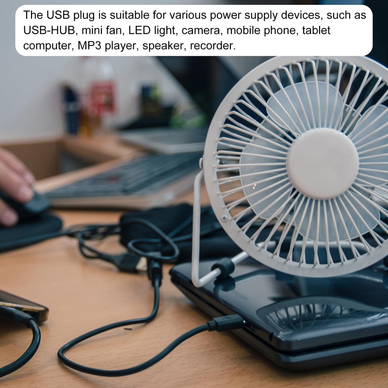 Das USB-Kabel unterstützt eine Ausgangsspannung von DC 5V und kann einen maximalen Strom von 3A verarbeiten. Der USB-Stecker ist für verschiedene Geräte geeignet, die 5V-Strom benötigen, wie z.B. USB-Hubs, Mini-Lüfter, LED-Leuchten, Kameras, Mobiltelefone, Tablets, MP3-Player, Lautsprecher, Recorder, Scanner, Heimtelefonsysteme und mehr.