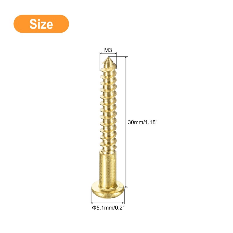 - [Product Parameters]- Thread Diameter: M3; Length Under Head: 30mm/1.18"; Head Type: Slot Round Head; Package Content:40pcs x Wood Screws