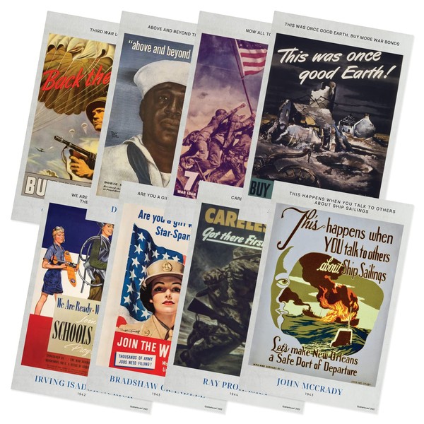 Quarterhouse WWII Posters Poster Set, Social Studies Classroom Learning Materials for K-12 Students and Teachers, Set of 8, 12 x 18 Inches, Extra Durable