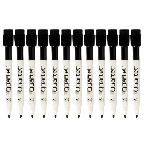 Quartet Dry Erase Markers, Whiteboard Markers, Fine Tip, ReWritables, Mini, Magnetic, Black, 12 Pack (48170)