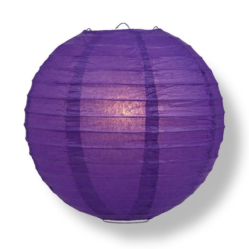 Quasimoon 8" Royal Purple Round Paper Lantern, Even Ribbing, Hanging Decorati...