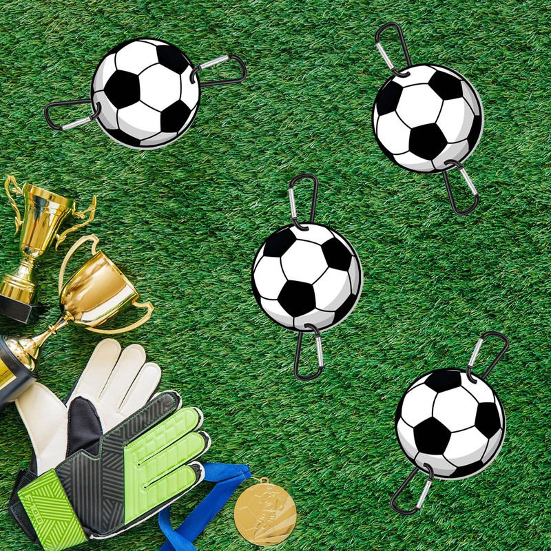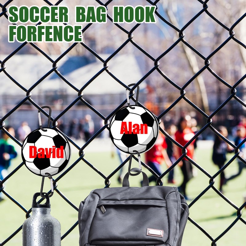 - UNIQUE DESIGN: The acrylic plate exterior of these sports bag hooks features a soccer design that you can write your name on. Perfect for giving to soccer fans.