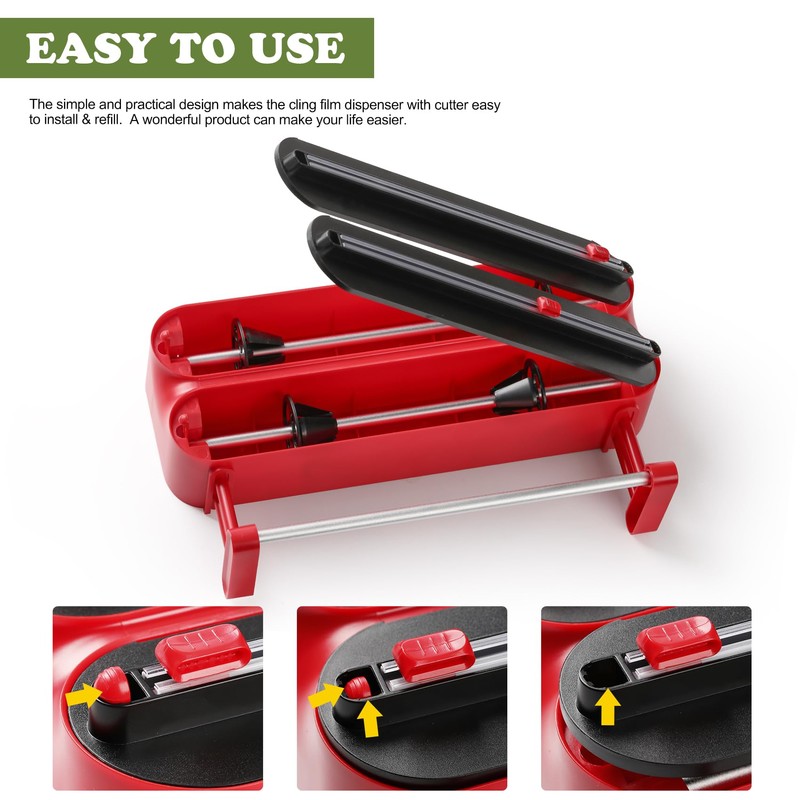 - ✅ Optimize Your Kitchen Space: This sleek, compact cling wrap dispenser with cutter (only 14.6" long) liberates valuable counter space. Magnetically attach it to your fridge or mount it on a cabinet door to maximize kitchen efficiency. Enjoy an organized, minimalist kitchen - even in smaller apartments! Includes a BONUS 50m BPA-Free Plastic Wrap roll to get you started!