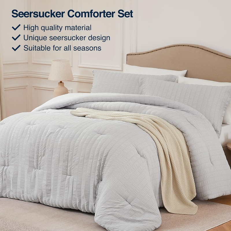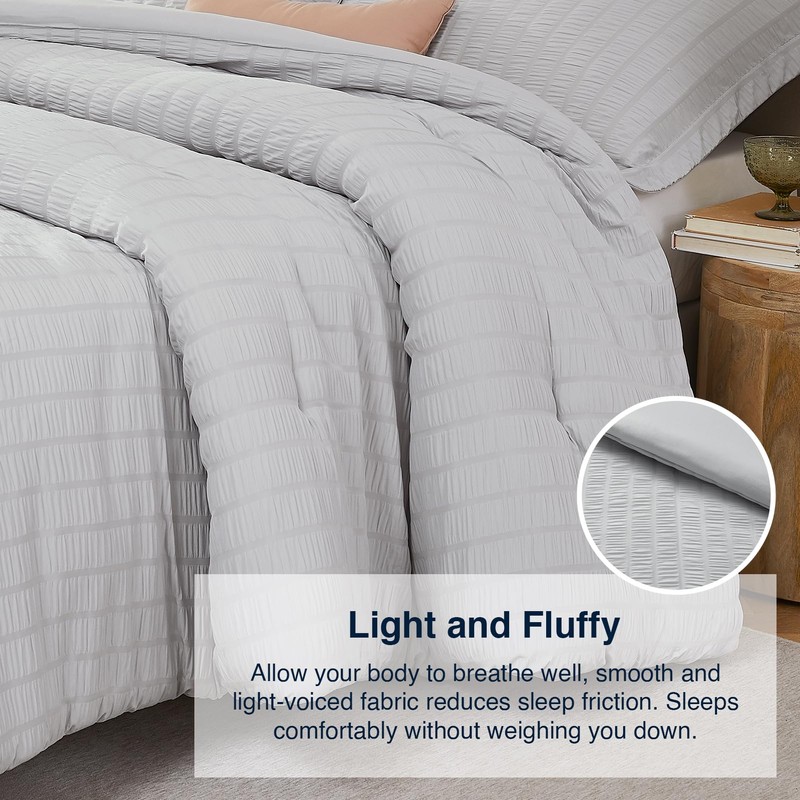 - Easy Care & Pet Friendly: The seersucker comforter is secured with stitching to ensure that the inner filling will not shift, providing long-lasting warmth. This king bedding set supports machine washing, no shrinkage, no distortion, convenient for you to maintain a clean sleeping environment. Soft and durable pet-friendly material is not easy to absorb pet hair and easy to clean.