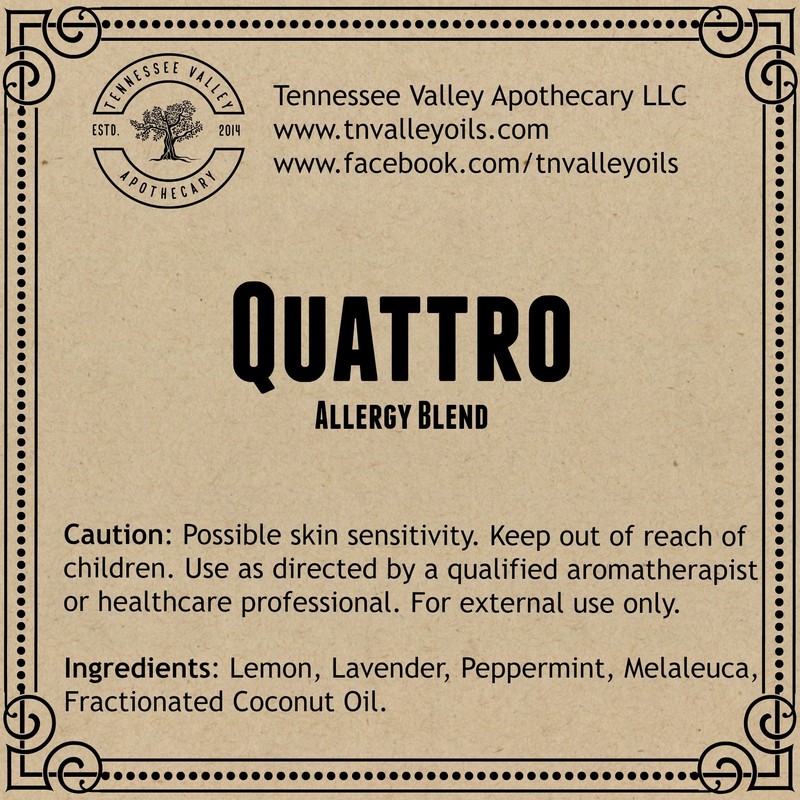 Quattro Pre-Diluted Essential Oil Roll-On Blend 10ml (1/3oz) | Antihistamine Formula, Sinuses, Congestion, Allergy