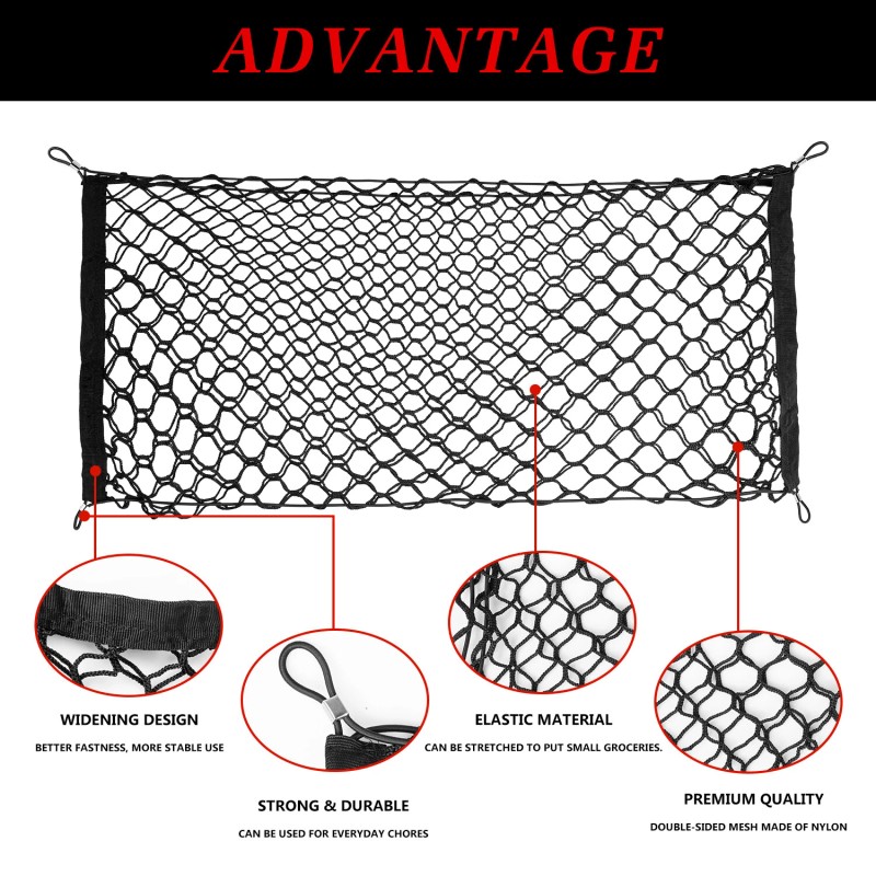 2. Better Organized Storage: The trunk net prevents stuff from spilling or sliding around in trunk, holds things securely in place without sloshing and get your needs quickly. Designed to provide the most storage space possible for you.