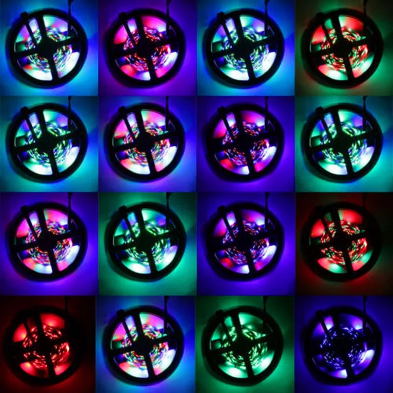 1 x 24 key IR wireless remote control with color changing capability and different flashing and strobing modes. Change from a cool subtle color change or a fast and vibrant strobe effect. Choose from any of the 3 2835 LED light strip comes with 1 red, 1 green and 1 blue in series and then the configuration repeats all the way up to 16' feet.