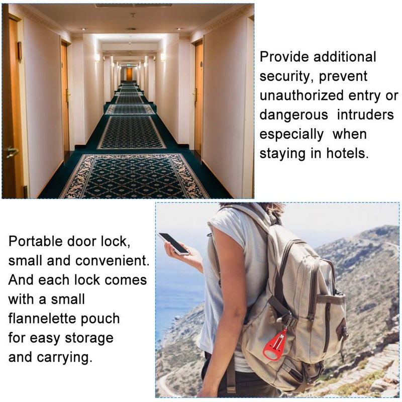 - 🔏【Ideal Door Lock for Protection】:Our portable locks provide extra security and privacy for your room. After using our security lock, people outside the door cannot use the key to open the door, preventing strangers from visiting suddenly, especially when traveling and in hotels.