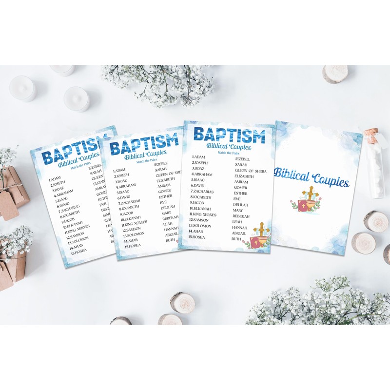 Package Includes: You will receive 25 5×7 inch baptism game cards and 1 answer card.