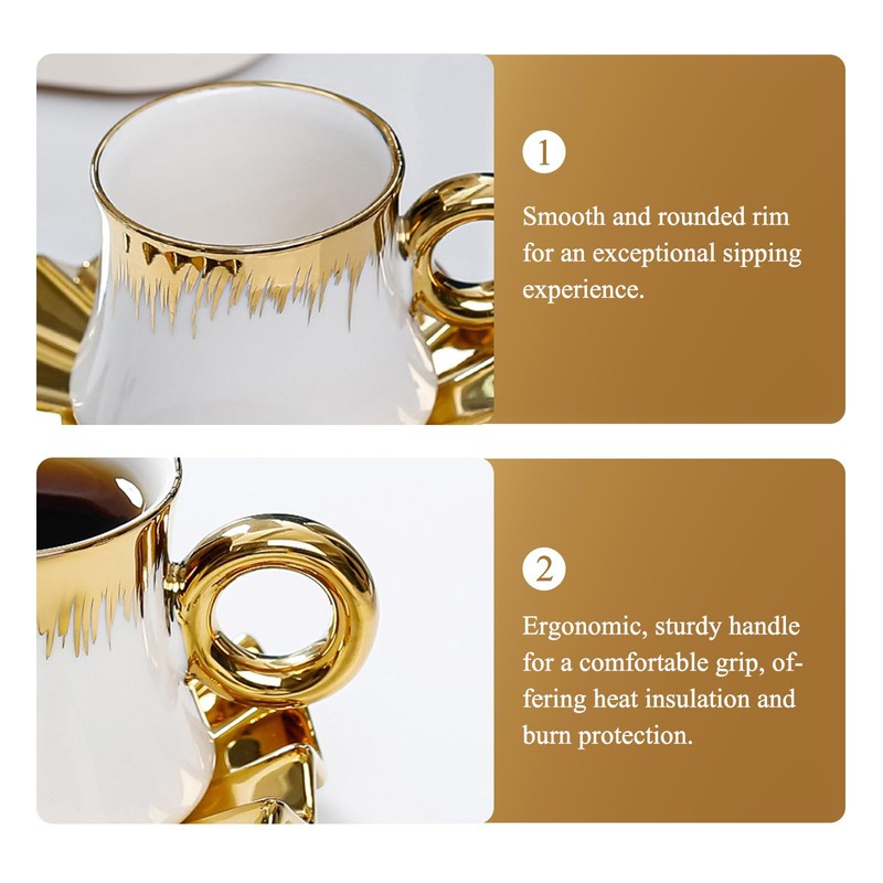 - 【Elegant Ottoman Design】This 6-piece Turkish coffee cup set features a white ceramic body with gold-plated rims and matching saucers, embodying timeless luxury for coffee lovers