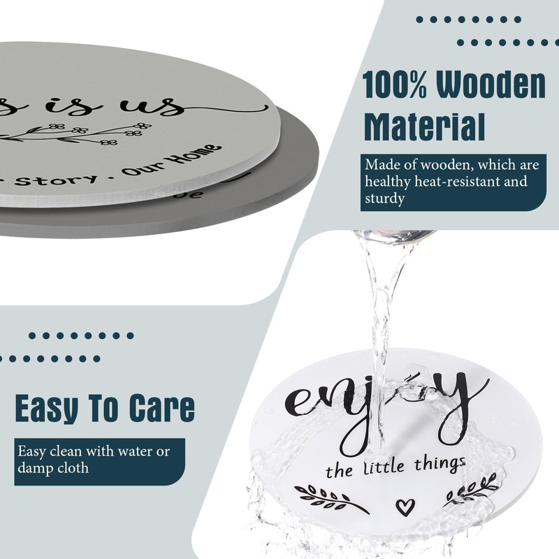 - Quality Material: crafted from quality wood, these potholders set and their storage box boast of an elegant, yet robust build; The manufacturing process ensures a well polished finish with no sharp burrs, making them safe for use; Featuring clear prints, the trivets setare designed to resist deformation or breakage, providing you with a long lasting companion for your tables