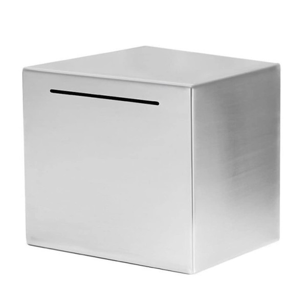 Queen-b Stainless Steel Square Piggy Bank, Large Capacity, Money Bank, Does Not Open, For Adults, Presents, Gifts, Coins, Bills, Money, Savings, Metal, Silver, Cube, Sturdy, Safe, Decorative (4.7 x
