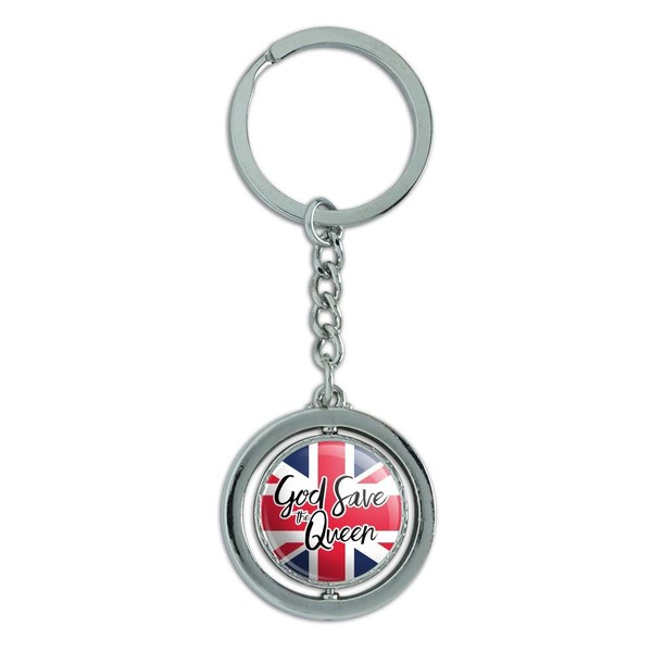 Queen Elizabeth II God Save The Queen Keychain Spinning Round Chrome Plated Metal
