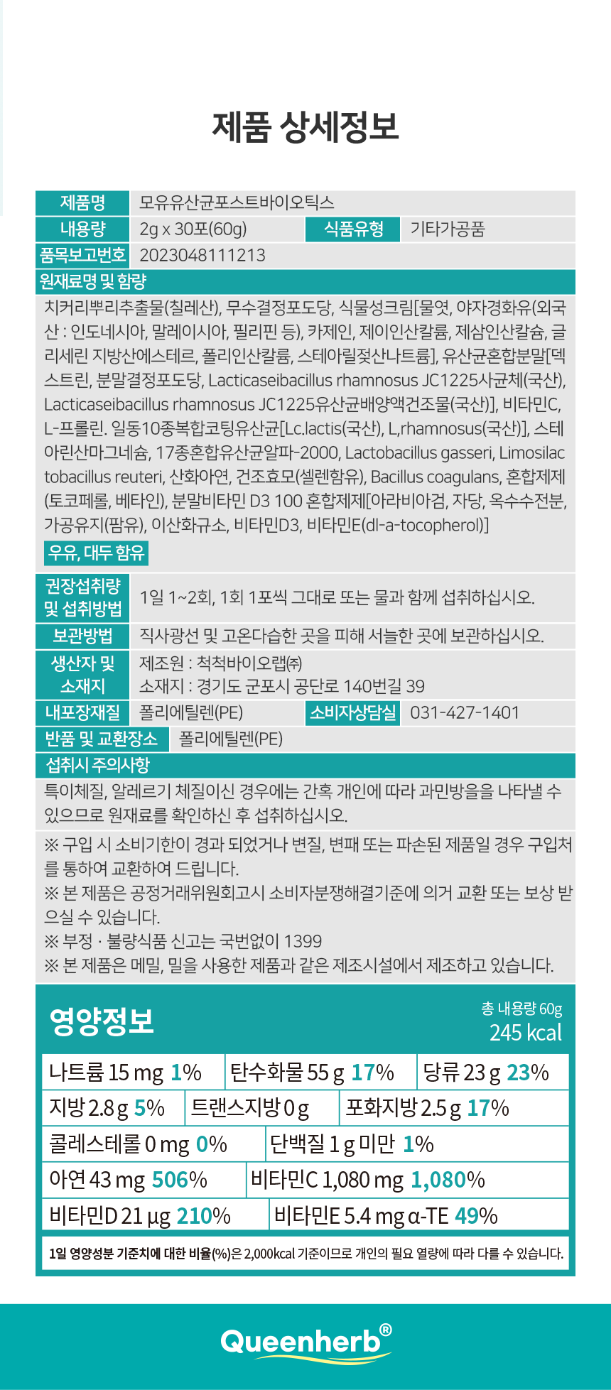 퀸허브 모유유산균 포스트바이오틱스 4박스(120포)