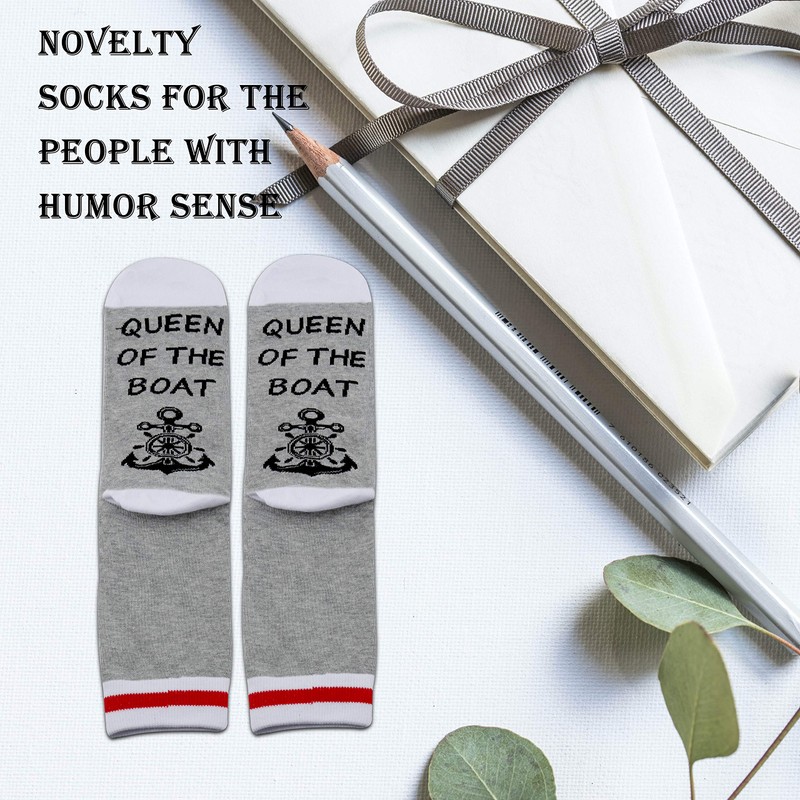 Queen Of The Boat Boating Lover Gift Novelty Nautical Sailing Gift King of The Boat Socks for Men Women (Boat Queen CA)