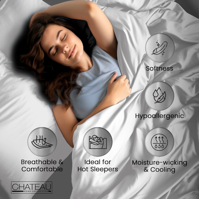 - Year-Round Luxury: The tencel lyocell fibers in our cooling bed sheets possess thermal-regulating properties, allowing them to adapt to the body's temperature fluctuations. These sheets can help cool down the body during warm periods by facilitating the escape of heat and moisture. Conversely, they provide warmth and insulation in cooler surroundings. This dynamic temperature regulation promotes an optimal sleep environment throughout the night, making our sheets suitable for year-round use.