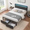 Queen Size Bed Frame LED Upholstered Headboard Platform Bed Frame with 2 Drawers