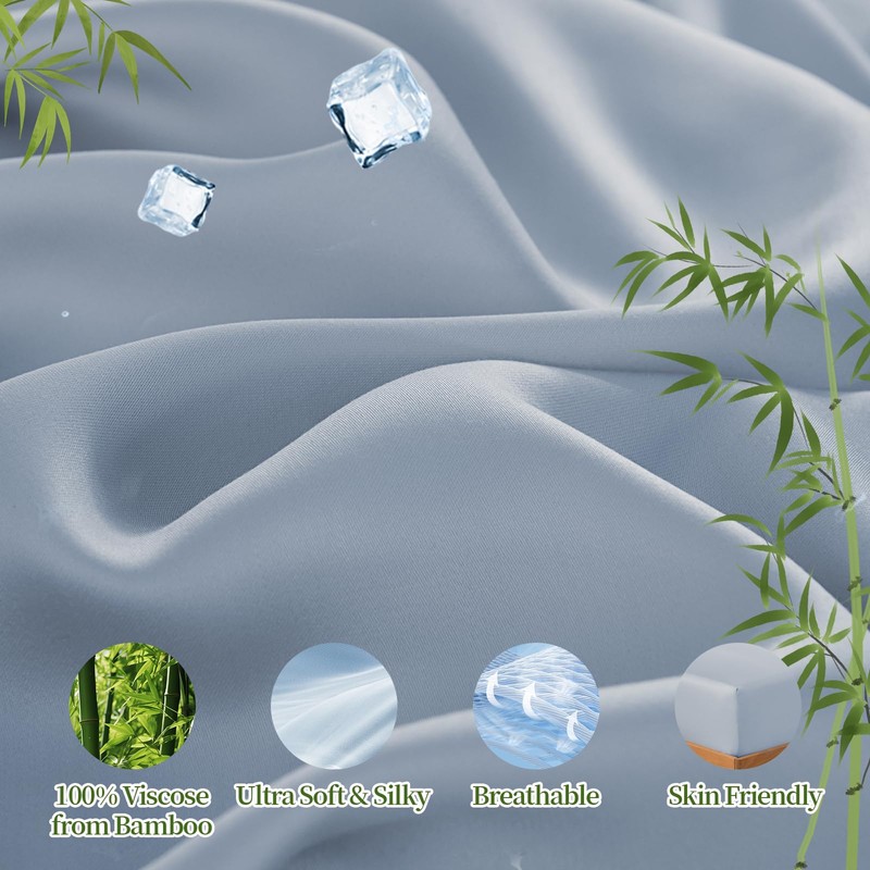 - 100% Viscose Derived from Bamboo for Ultimate Comfort – Our fitted sheet is crafted from 100% premium viscose from bamboo, known for its ultra-soft texture and cooling properties. Perfect for hot sleepers, it naturally wicks moisture, ensuring a comfortable night's sleep