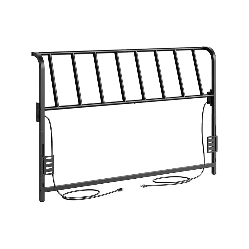 Queen Size Headboard Only, Metal Headboard with 2 Power Strips, 95 Degrees Re...