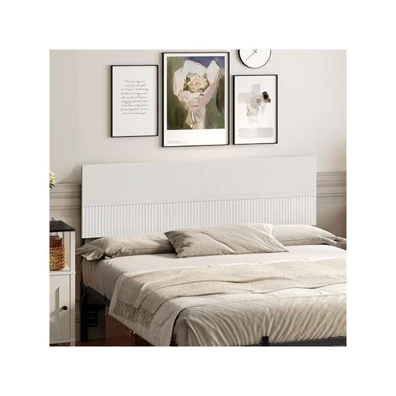 Queen Size Headboard Only with Wavy Panel Design, Modern Wooden Bed Headboard and Metal Frame, Connection Adapter Included, Easy Assembly, White