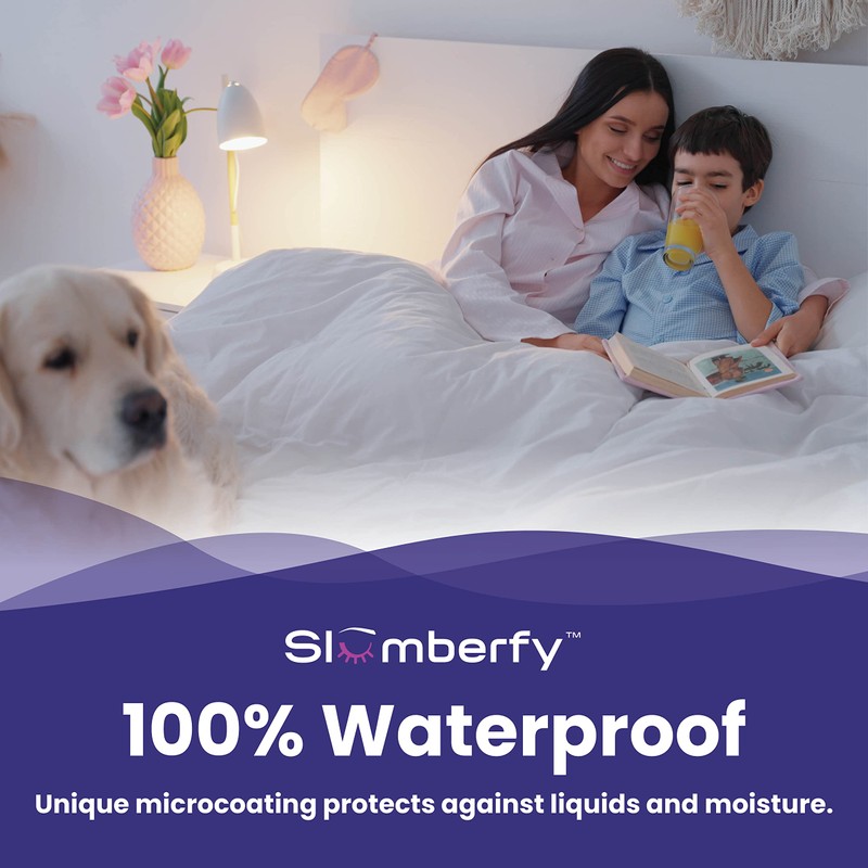 - WATERPROOF MATTRESS ENCASEMENT: Slumberfy has developed a premium Waterproof Mattress Protector Encasement, with a focus on keeping your family’s mattresses safe from bed bugs and dust mites, as well as liquid spills, sweat, dirt, dust and unhealthy allergens that may be lurking in their mattress. Less dust and dirt in your mattress equal a better night’s sleep, every time!