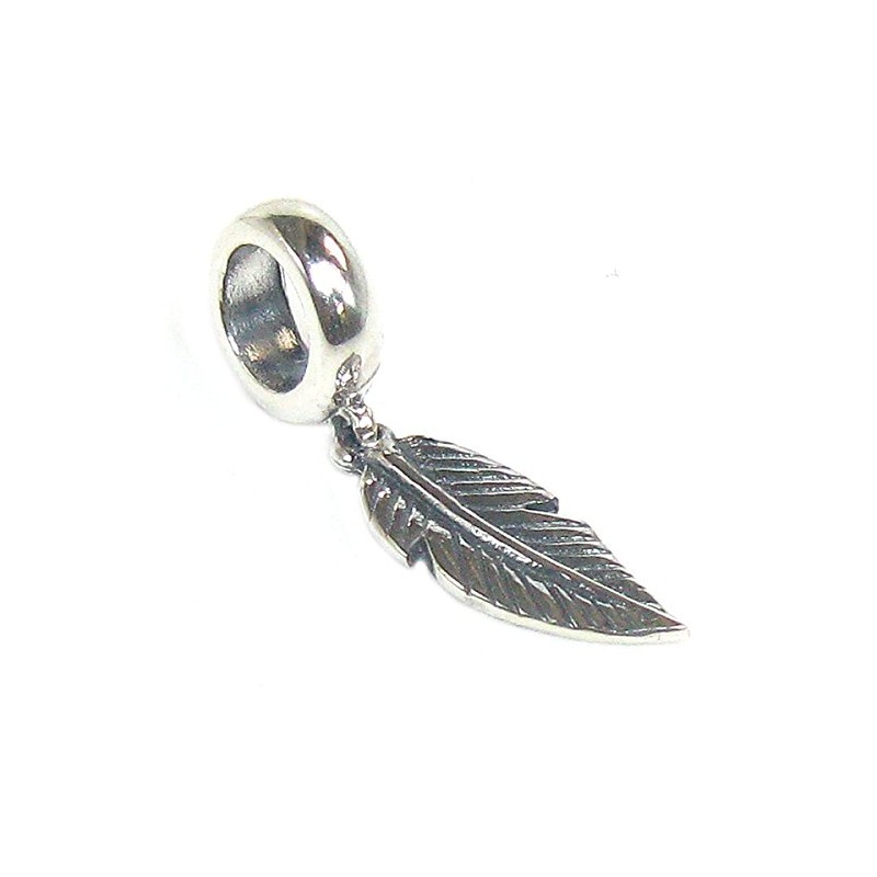 Queenberry Sterling Silver Angel Feather Dangle Bead For European Charm Bracelets