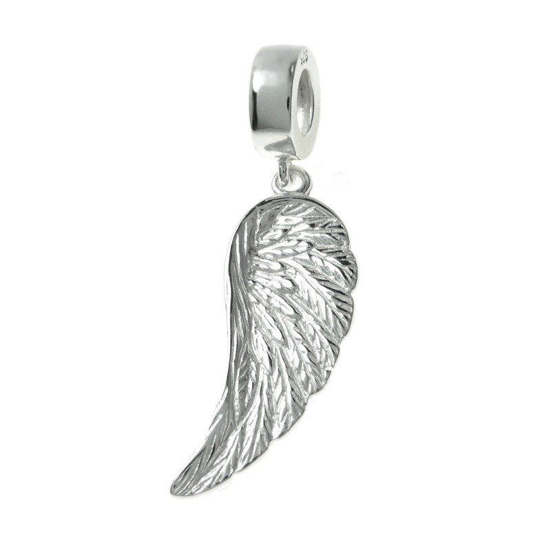 Queenberry Sterling Silver Angel Wing Feather Guidance European Style Dangle Bead Charm