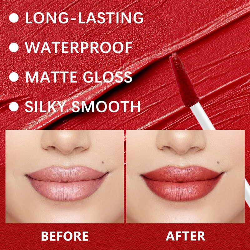 - 【24Hr Wear & Vibrant Shades】Long-lasting, smudge-proof formula locks in color and moisture for up to 24 hours. The lip gloss dries to a velvety matte finish, depending on your preference. Choose from multiple shades—from nudes to bold hues—to match any mood or occasion.