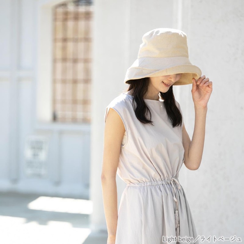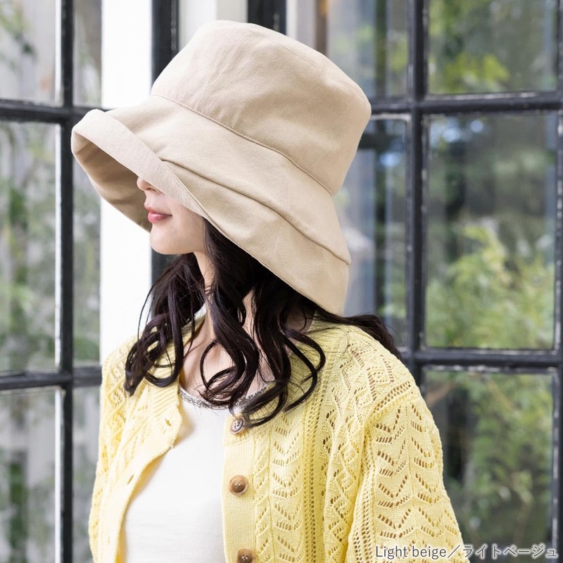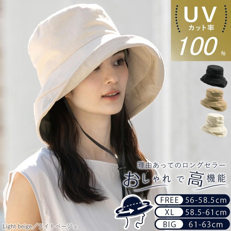 QUEENHEAD Women's Hat, UV Protection, Large Size, Brim Hat with Drawstring, Small Face Effect, Wide Brim, UV Protection, Small Face, light beige