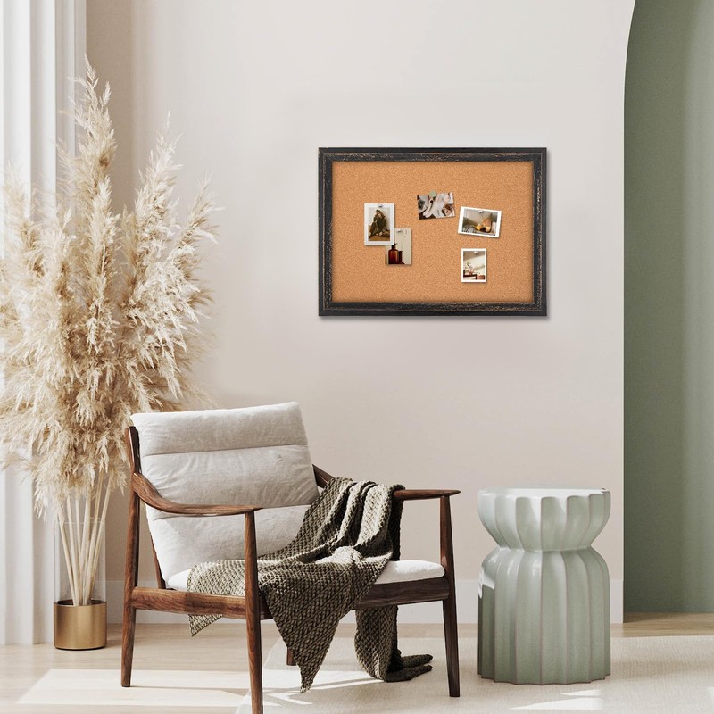 - 【Sturdy Wooden Frame】The vintage black frame of our cork bulletin board is ideal for home decoration. The solid frame is durable with smooth edges