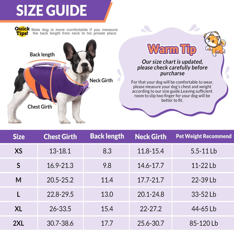 - Dog Life Jackets for Small, Medium and Large Dogs - The dog life vests are cute for all the dog breeds including Chihuahua, Poodle, Yorkshire Terrier, Maltese, Pomeranian, Dachshund, Boston Terrier, French Bulldog, Labrador Retriever, Beagle, Boxer, Great Dane etc. Please do refer to our size chart.