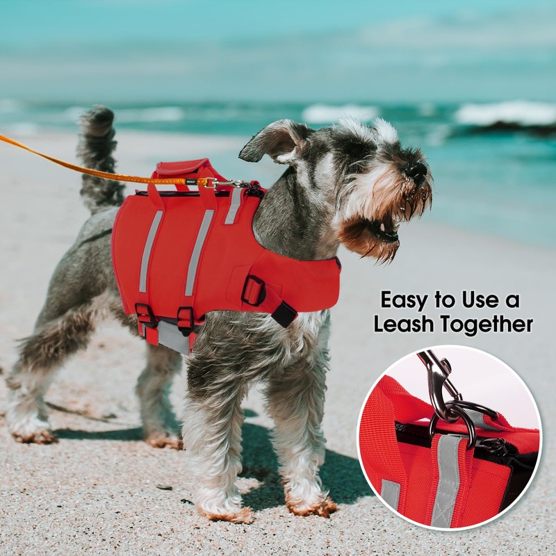 - LIGHTWEIGHT DOG LIFE PRESERVER - The dog life jacket for swimming is light-weight, adjustable, quick-drying and comfortable to use. The dog swimming vest is available in 5 sizes from XS through XXL for the most dog breeds including Yorkshire Terrier, Chihuahua, Poodle Terrier, French Bulldog, Dachshund, Boston Terrier, Great Dane etc.